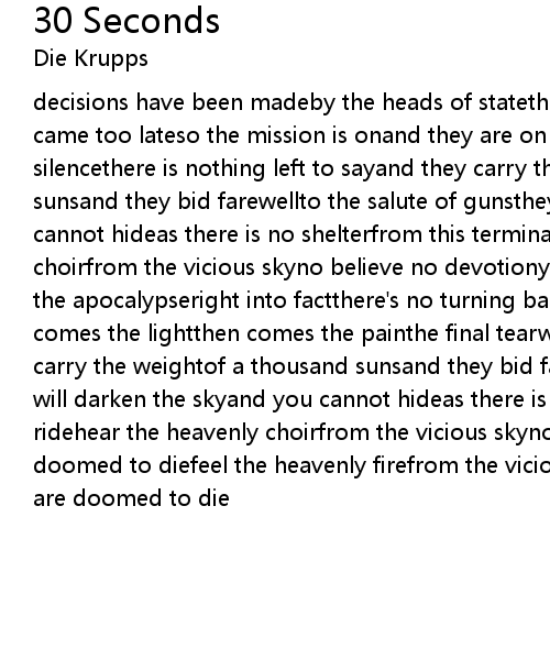 decisions have been madeby the heads of statethey cannot be revokedthe regrets came too lateso the mission is onand they are on their waythey will come in silencethere is nothing left to sayand they carry the weightof a thousand sunsand they bid farewellto the salute of gunsthey will darken the skyand you cannot hideas there is no shelterfrom this terminal ridehear the heavenly choirfrom the vicious skyno believe no devotionyou are doomed to diethey'll turn the apocalypseright into factthere's no turning backfrom a suicide pactfirst comes the lightthen comes the painthe final tearwill be lost in rainand they carry the weightof a thousand sunsand they bid farewellto the salute of gunsthey will darken the skyand you cannot hideas there is no shelterfrom this terminal ridehear the heavenly choirfrom the vicious skyno believe no devotionyou are doomed to diefeel the heavenly firefrom the vicious skyno believe no devotionyou are doomed to die |