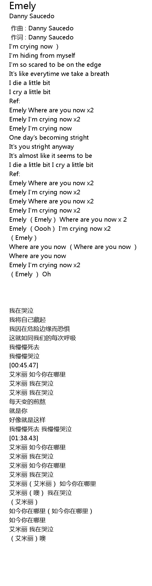 | [02:01.61] | Emely I' m crying now x2 |