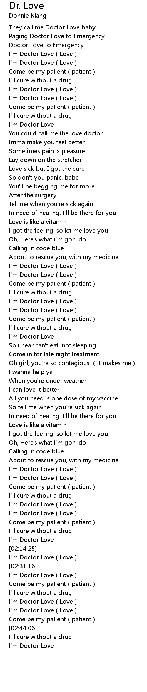 | [00:02.97] | Paging Doctor Love to Emergency |