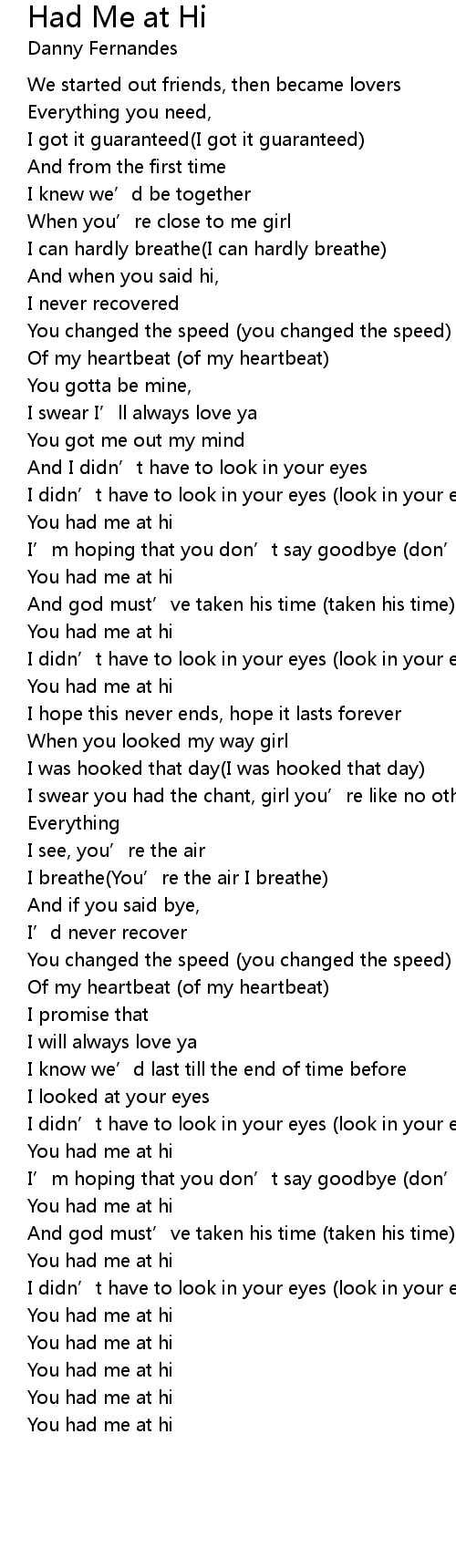 | Song | Had Me at Hi |
