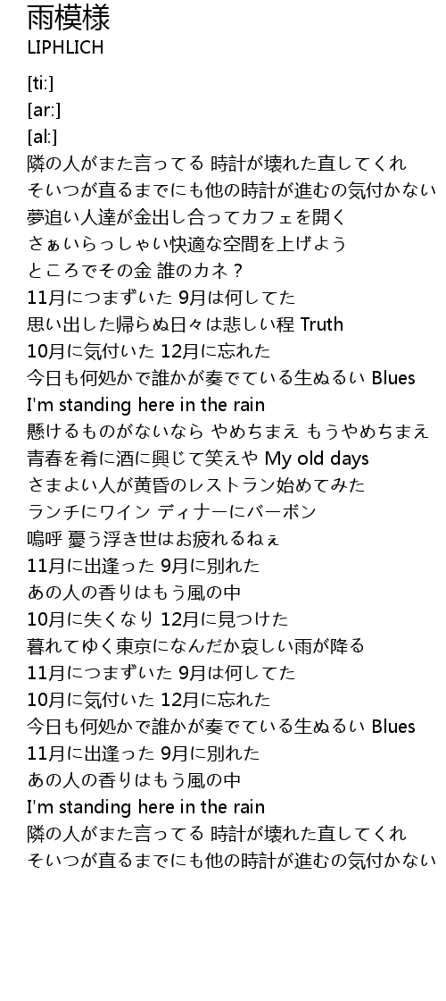 | [01:19.61] | 11月につまずいた 9月は何してた |