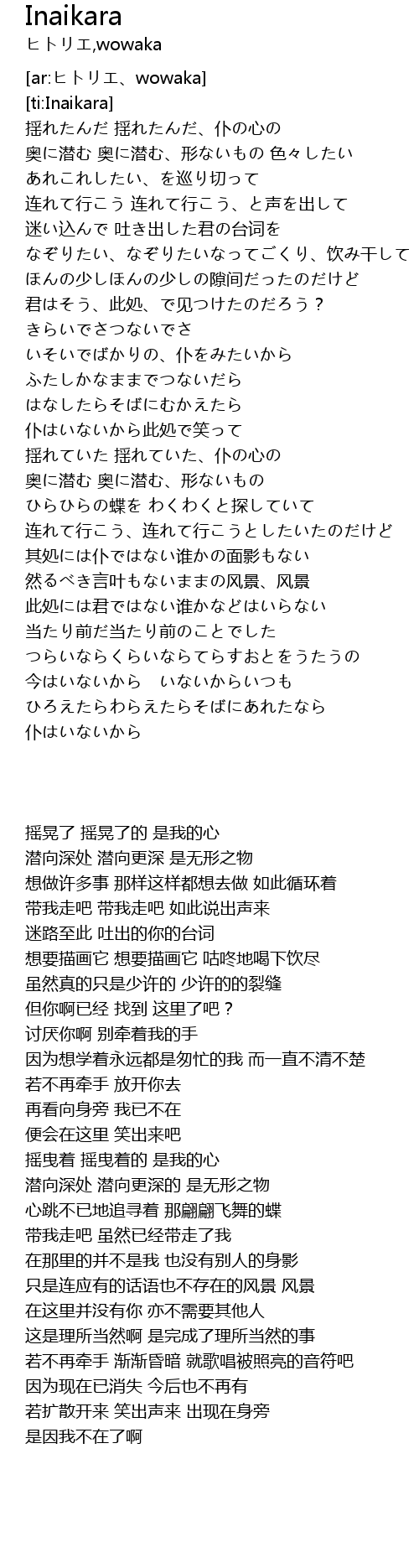 | [03:30.28] | ひらひらの蝶を わくわくと探していて |