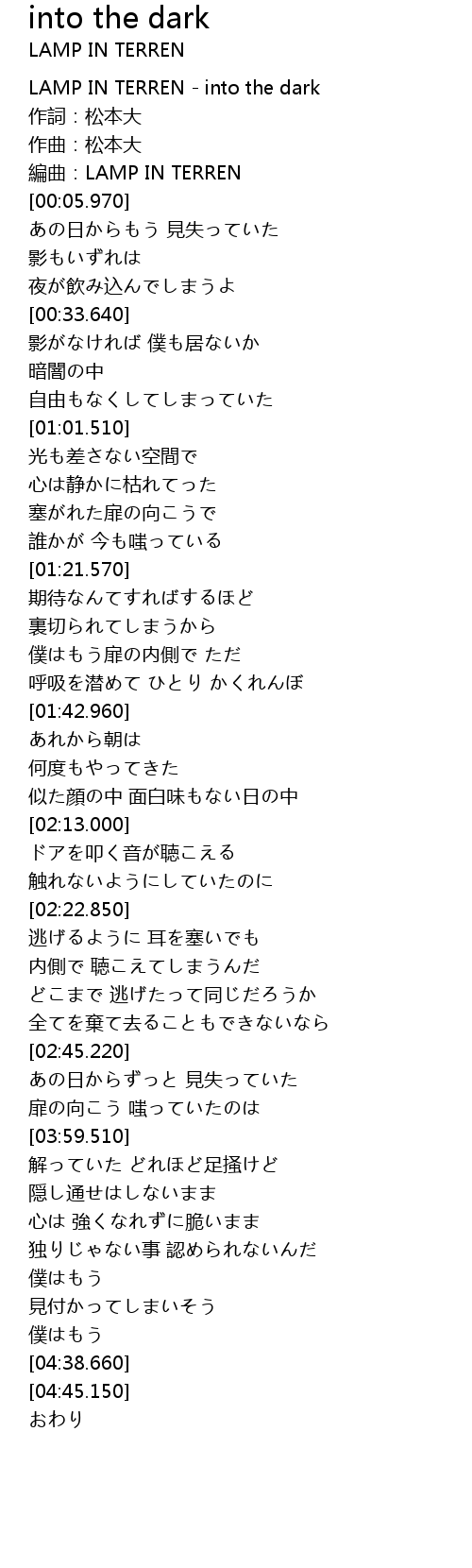 | [00:00.320] | LAMP IN TERREN into the dark |