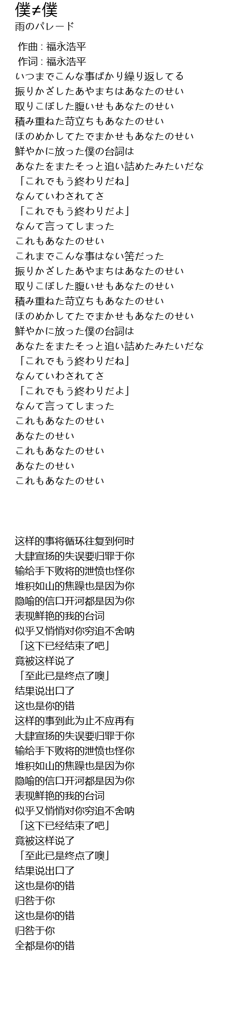 | [02:24.50] | 積み重ねた苛立ちもあなたのせい |