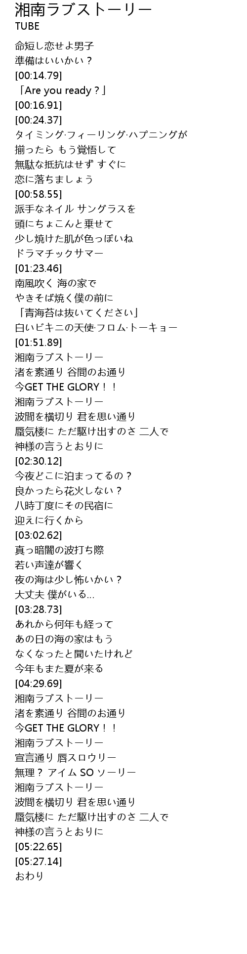| [04:57.40] | 湘南ラブストーリー |