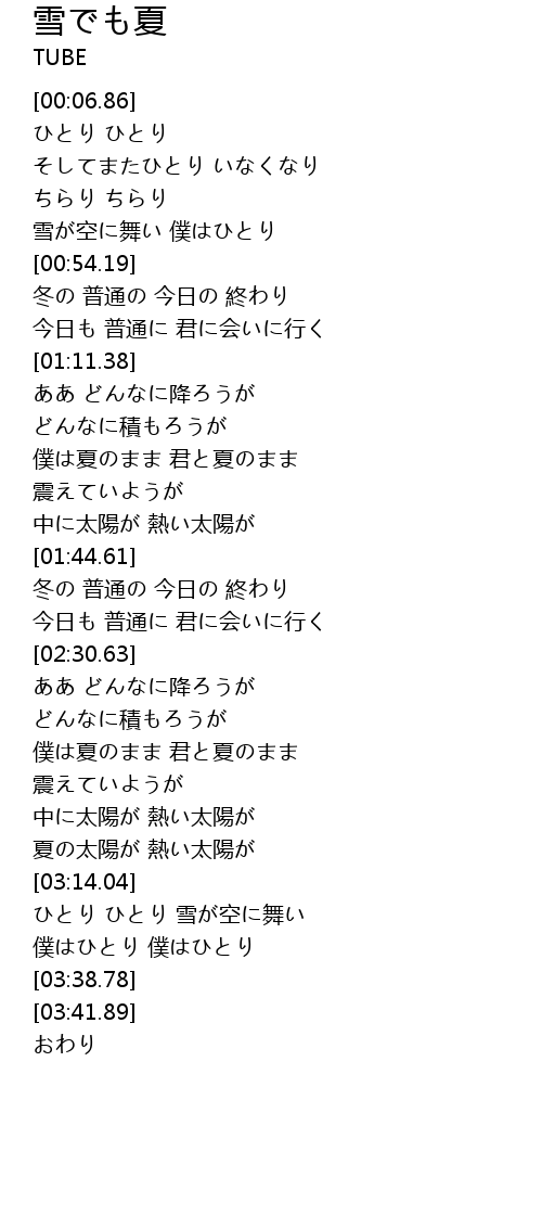 | [00:55.74] | 冬の 普通の 今日の 終わり |