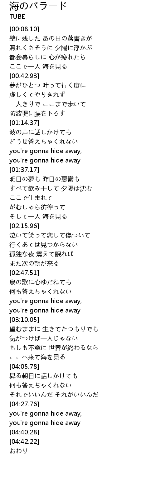 | [03:57.91] | ここへ来て海を見る |