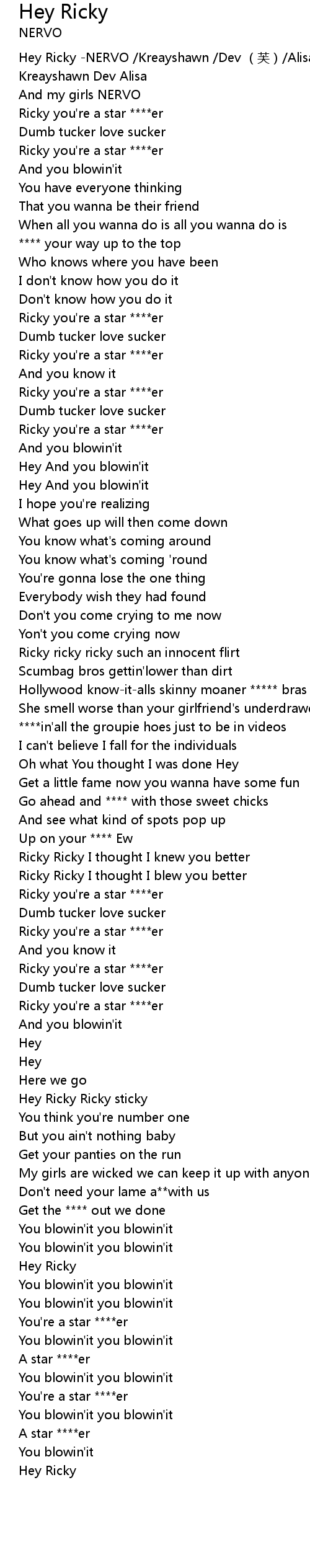 | [00:00.00] | Hey Ricky NERVO Kreayshawn Dev fu Alisa |