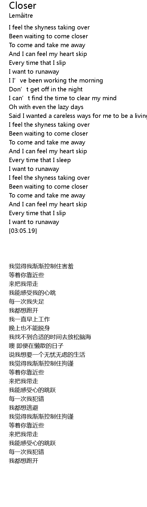 | [00:14.96] | Been waiting to come closer |