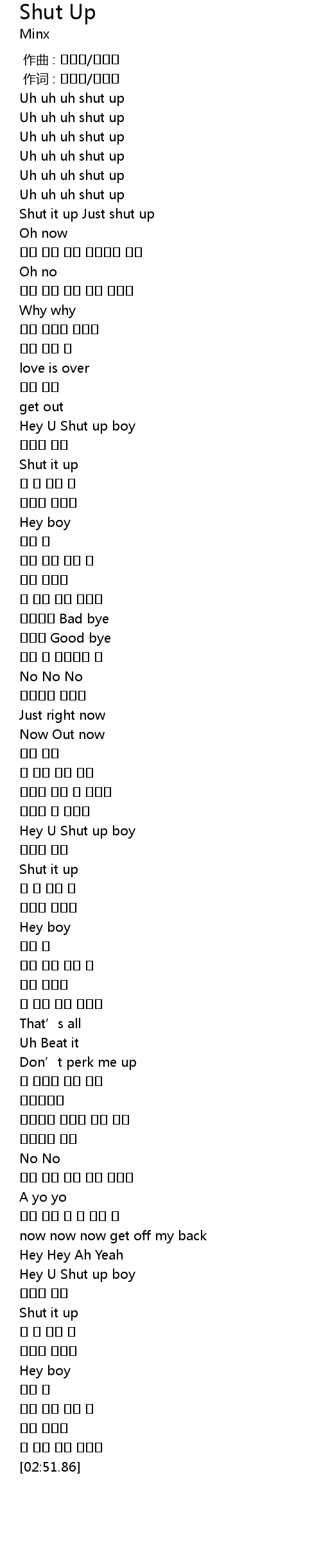 | [02:29.70] | Hey U Shut up boy |