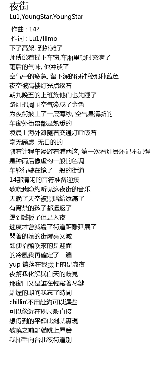 | [00:01.00] | 作词 : Lu1/Illmo |