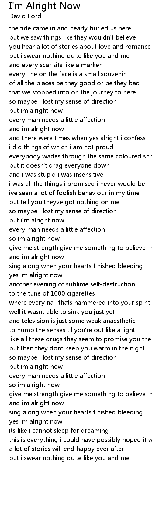 and im alright now |