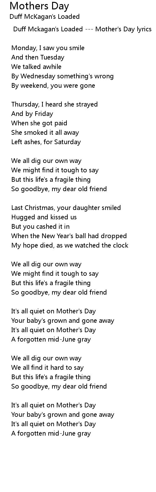 Duff Mckagan's Loaded --- Mother's Day lyrics |
