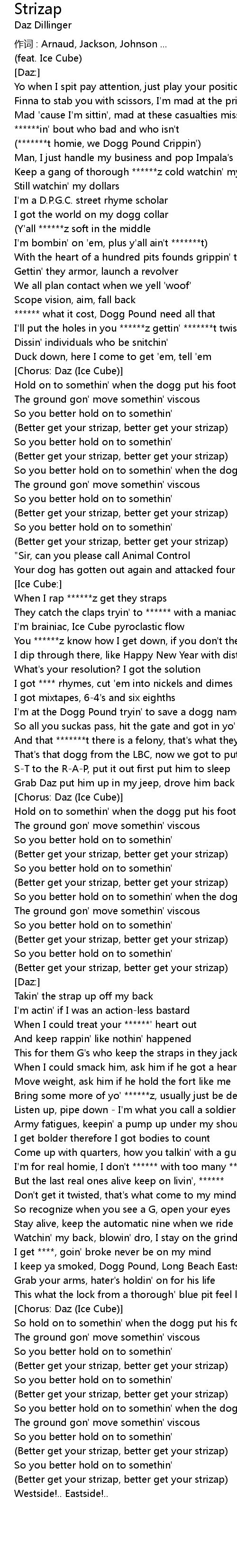 | I'm at the Dogg Pound tryin' to save a dogg named Daz | |