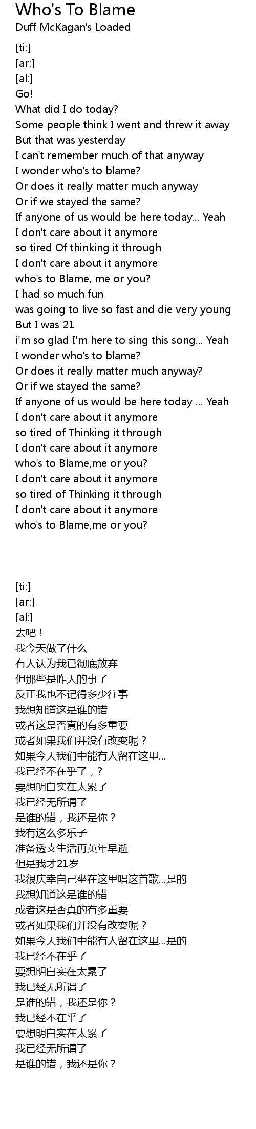 who's to Blame,me or you? |