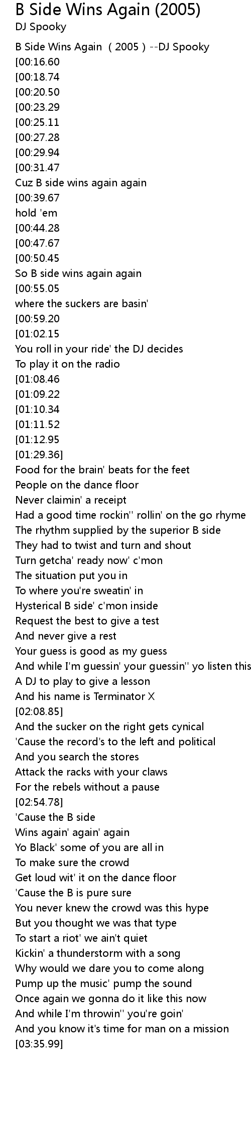 | [00:02.38] | B Side Wins Again (2005)--DJ Spooky |