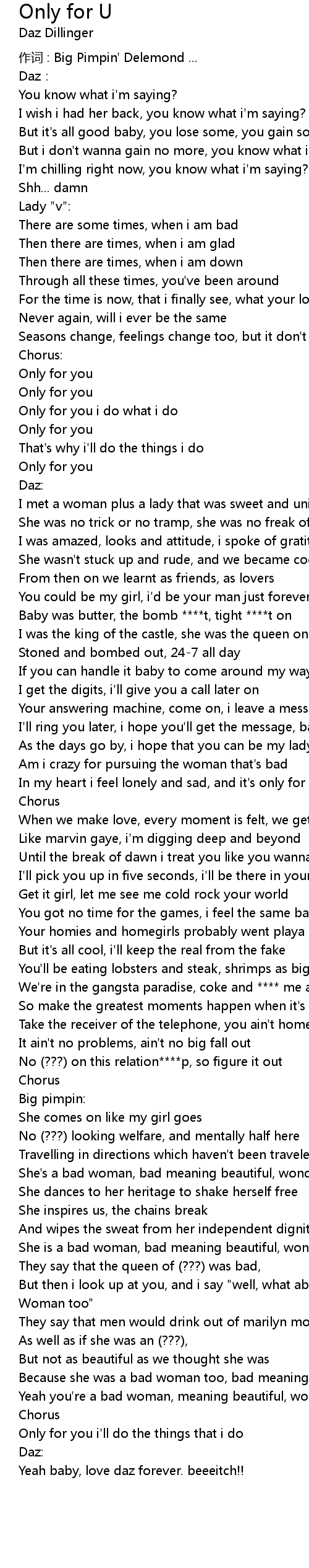 | Yeah you're a bad woman, meaning beautiful, wonderful and good | |