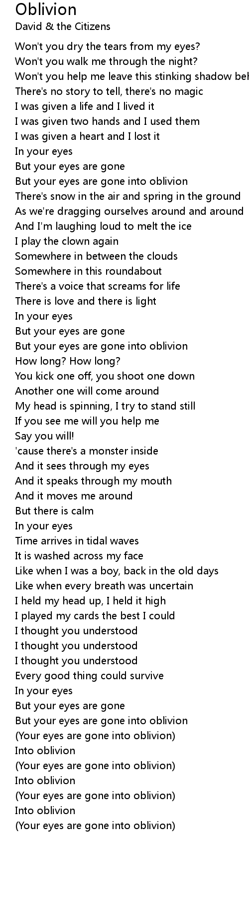 But your eyes are gone into oblivion |