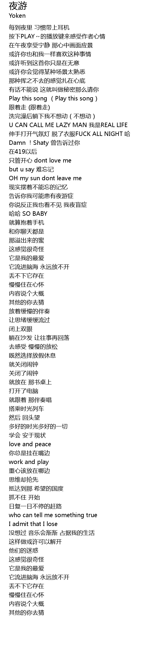 | [00:37.510] | U CAN CALL ME LAZY MAN wǒ shì REAL LIFE |