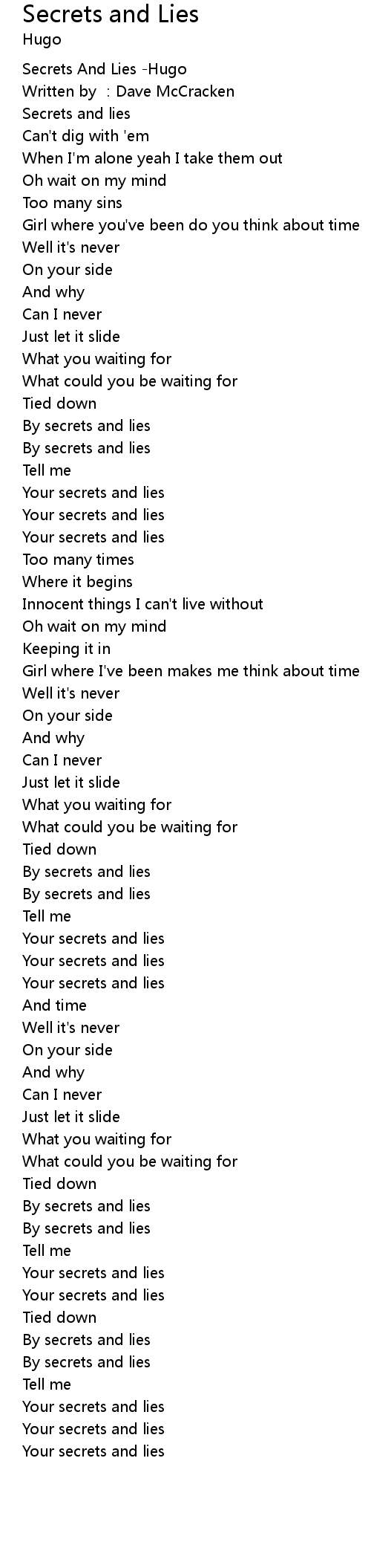 | [00:00.203] | Secrets And Lies -Hugo |