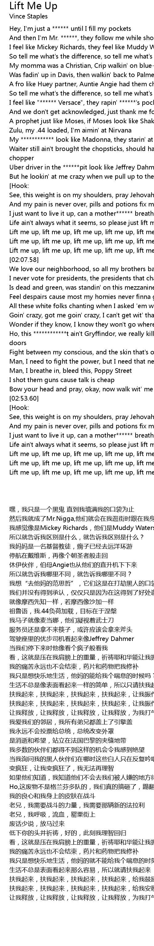 Lift me up, lift me up, lift me up, lift me up, lift me up |