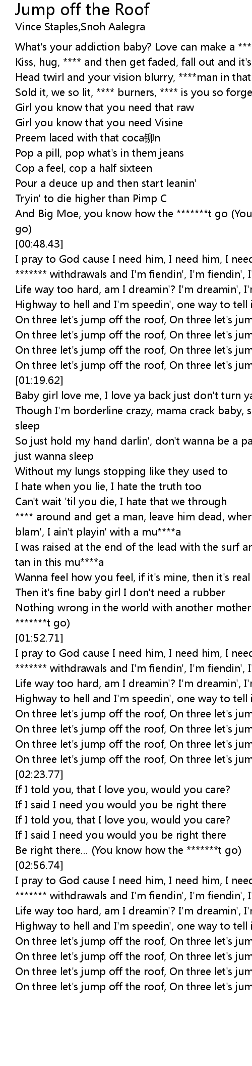 | [01:16.06] | On three let's jump off the roof, On three let's jump off the roof |