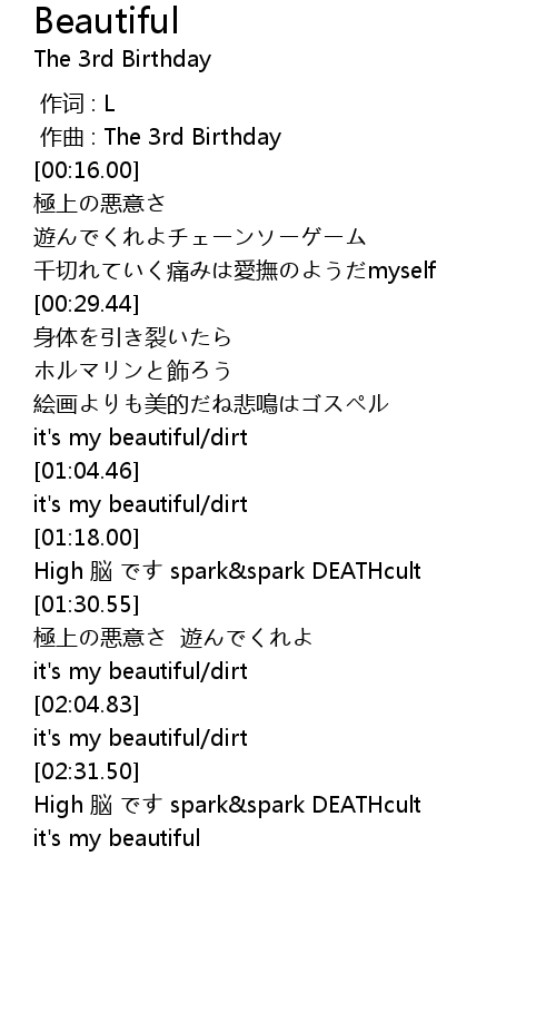 | [02:07.76] | it's my beautiful/dirt |