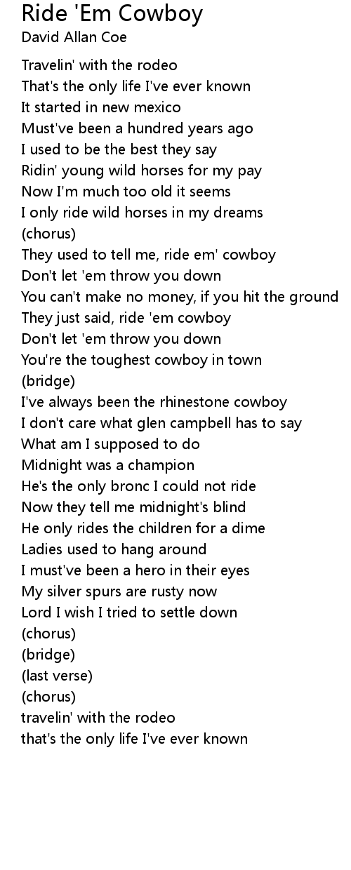 They used to tell me, ride em' cowboy |