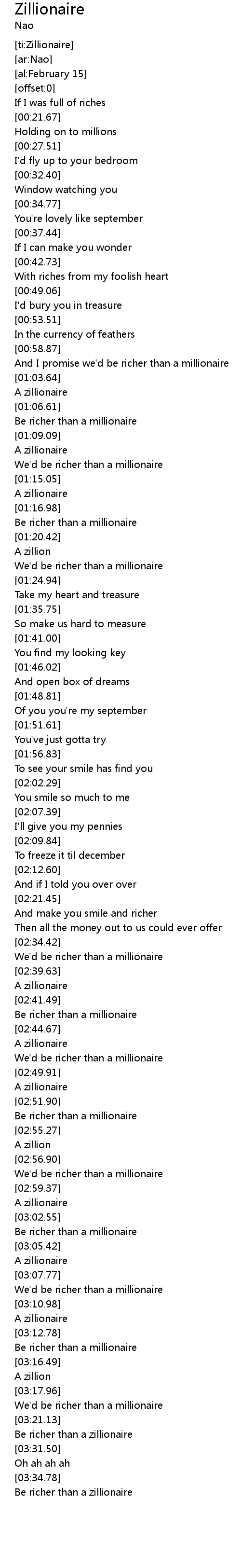 [ti:Zillionaire] |