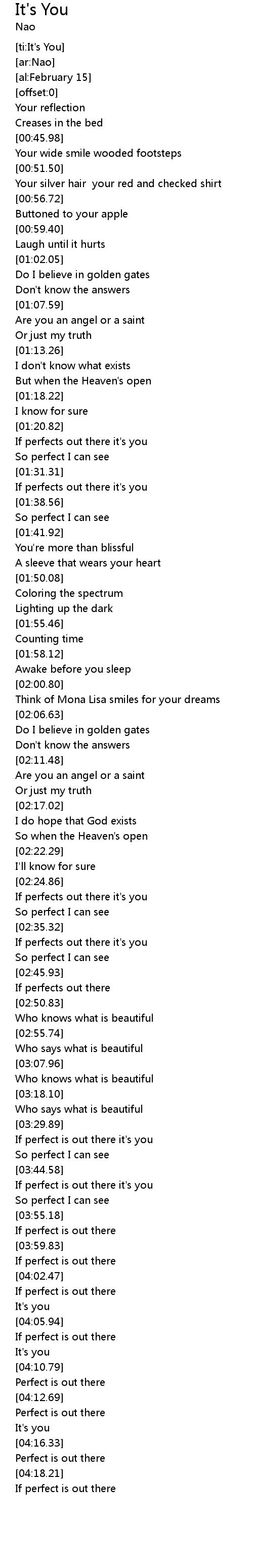 If perfect is out there it's you |