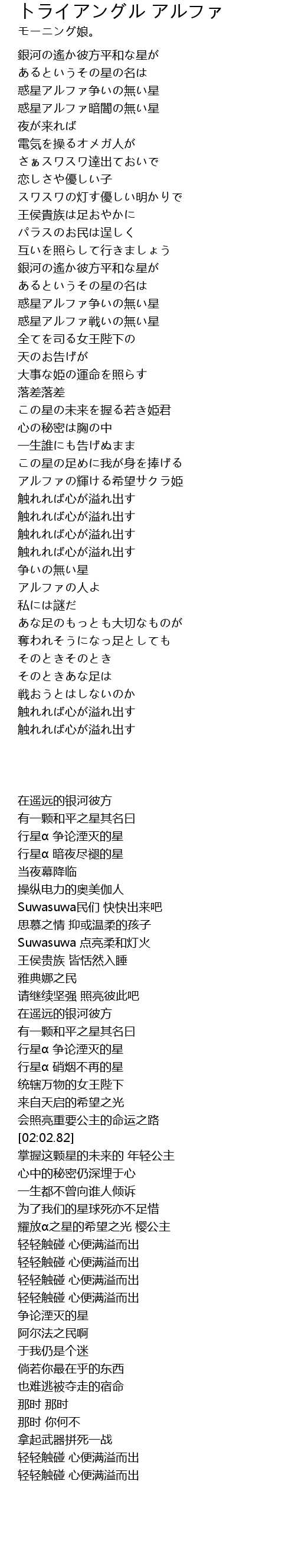 | [02:24.04] | アルファの輝ける希望サクラ姫 |
