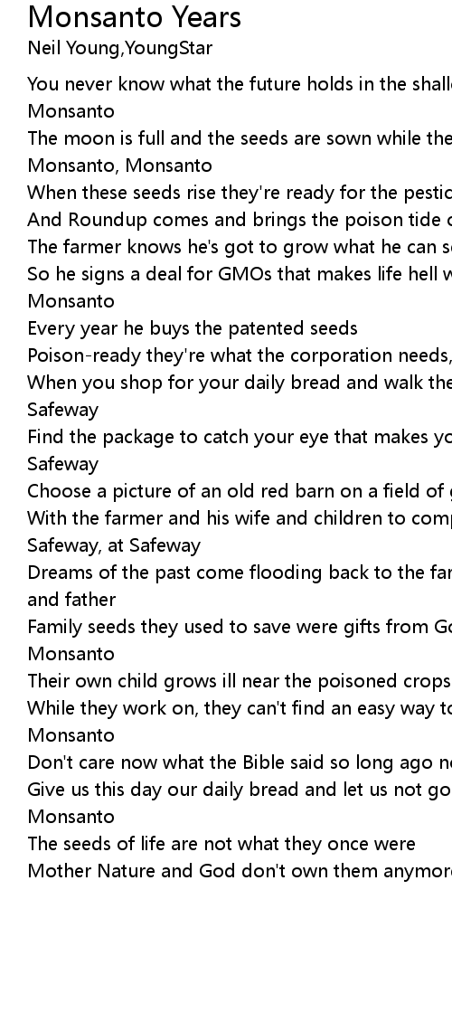 Don't care now what the Bible said so long ago not Monsanto, Monsanto |