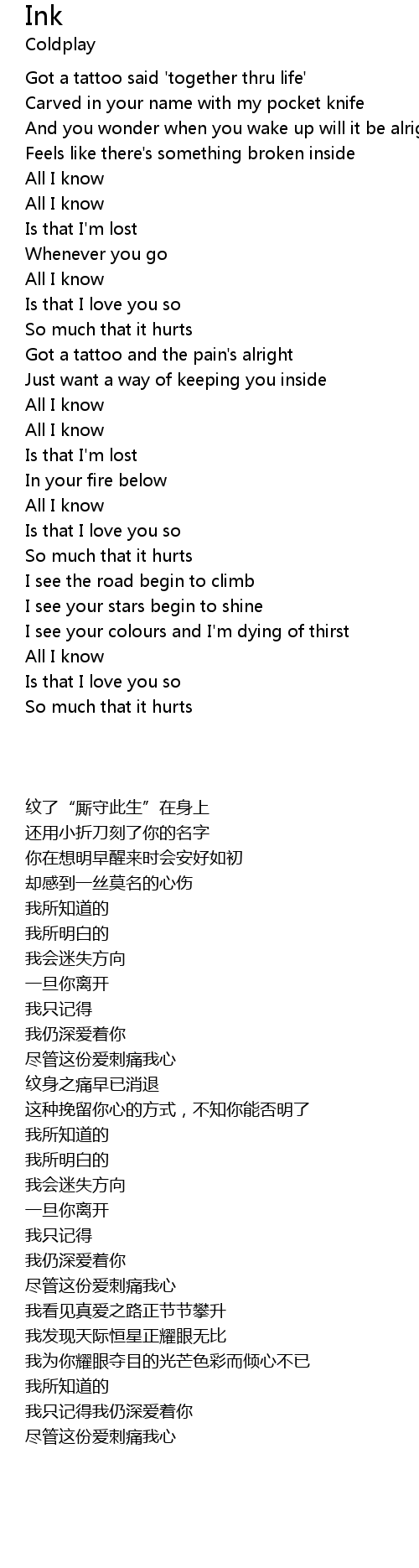 | [00:29.790] | Got a tattoo said 'together thru life' |
