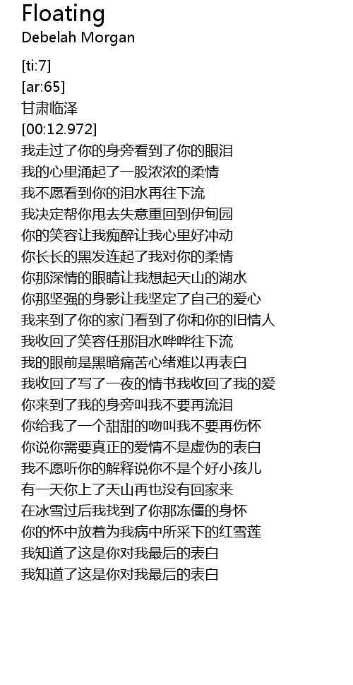 | [03:26.764] | 我知道了这是你对我最后的表白 |