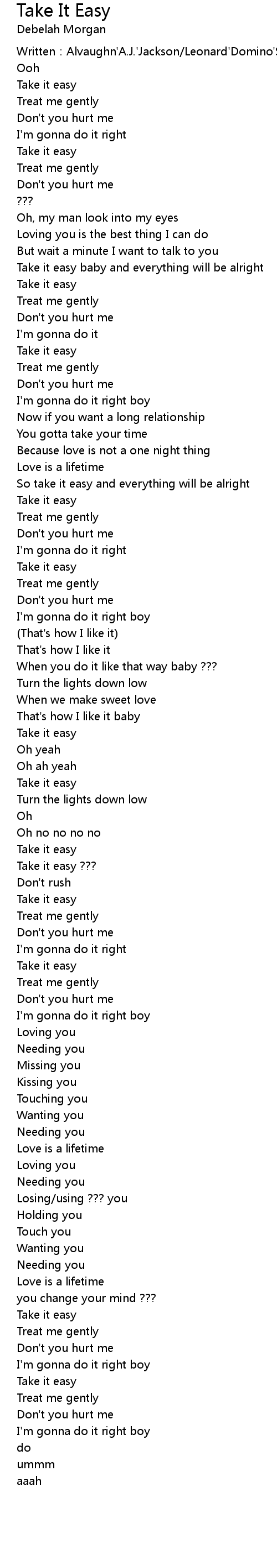 | Take it easy ??? | |