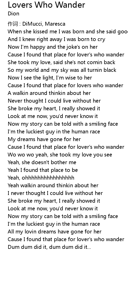 | Cause I found that place for lover' s who wander | |