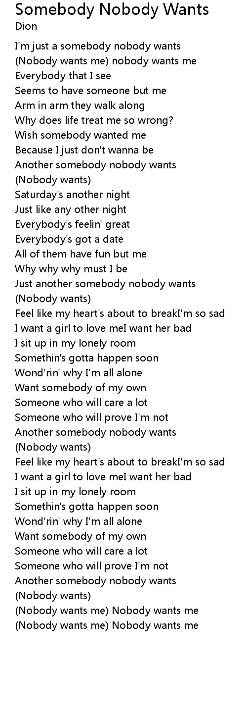 I'm just a somebody nobody wants |