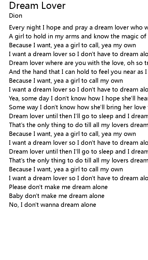 Every night I hope and pray a dream lover who will come my way |