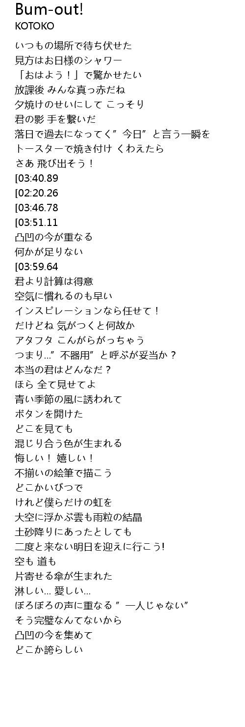 | [01:20.41][03:59.64] | 僕らは残念だ!って笑おう |