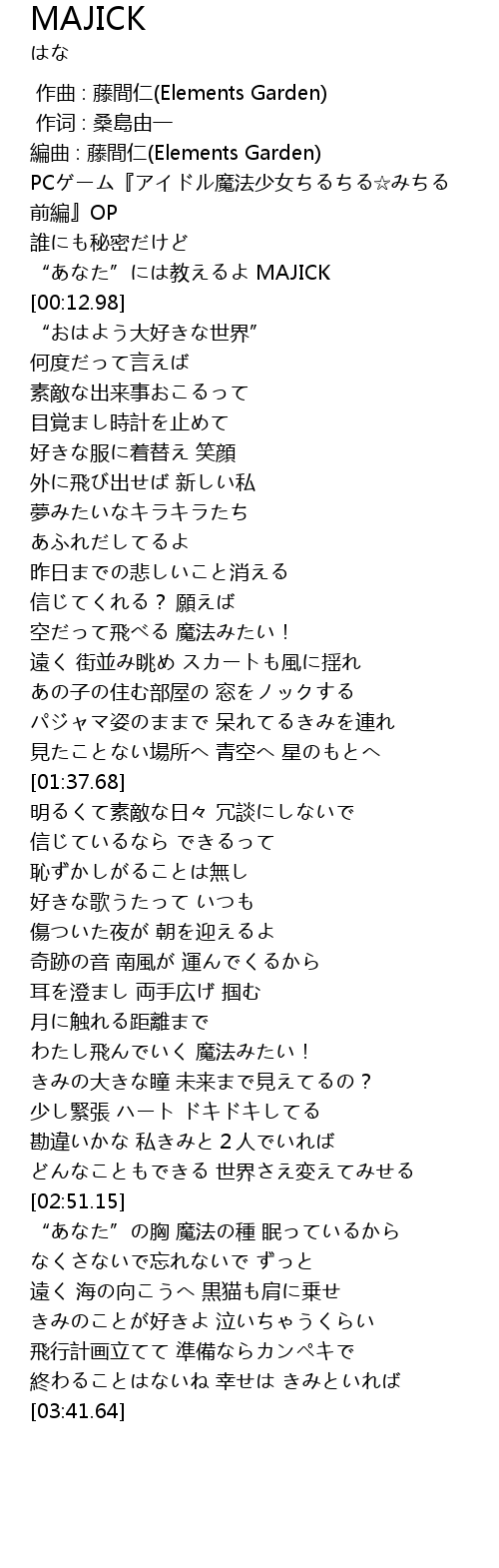 | [00:04.79] | “あなた”には教えるよ MAJICK |