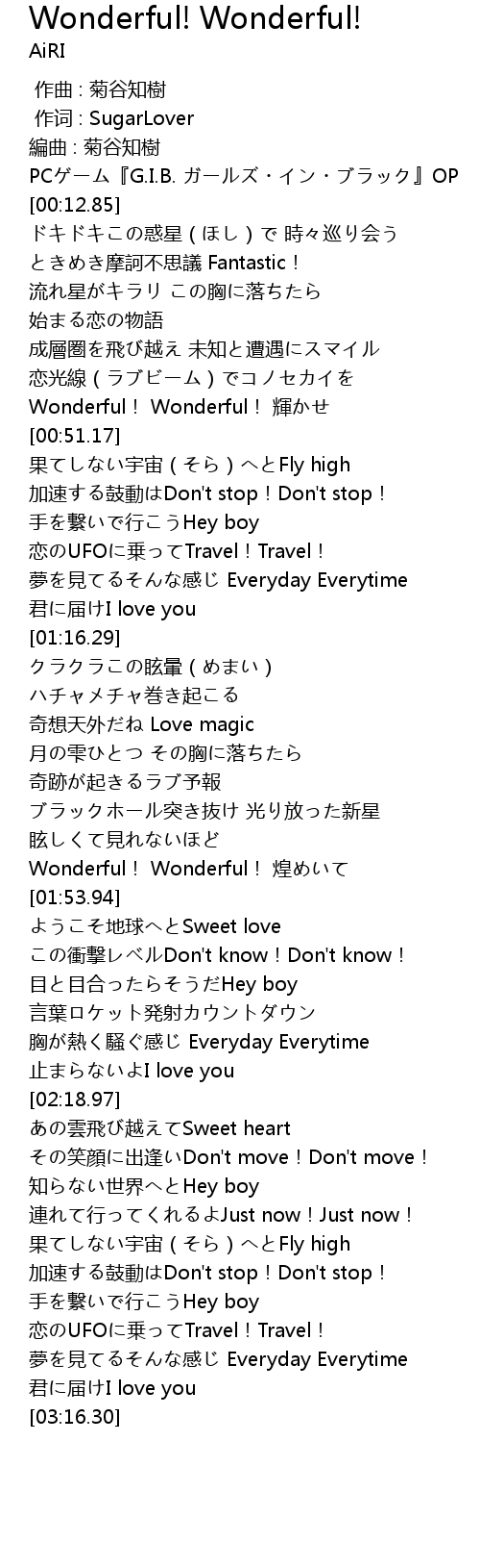 | [00:45.25] | Wonderful! Wonderful! 輝かせ |