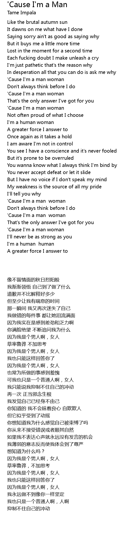 'Cause I'm a man woman |