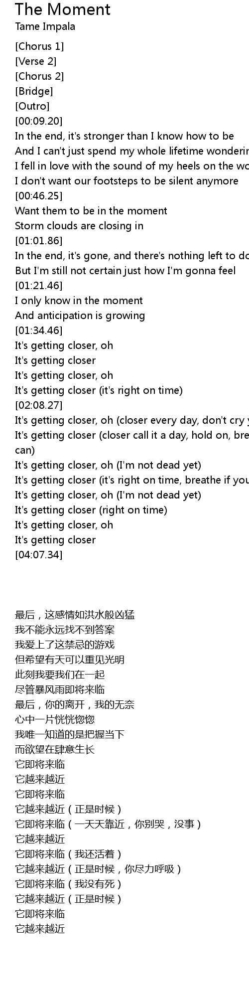 It's getting closer, oh (closer every day, don't cry you'll be okay) |