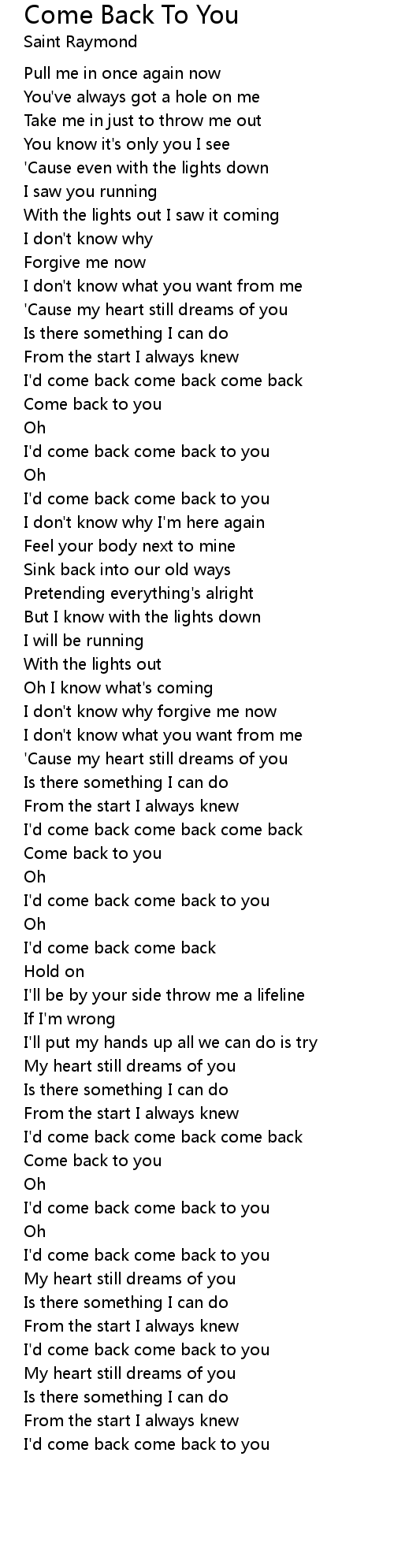I'd come back come back come back |