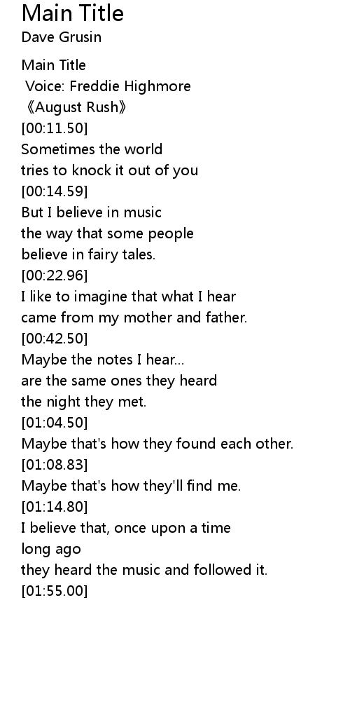 | [00:09.00] | August Rush |
