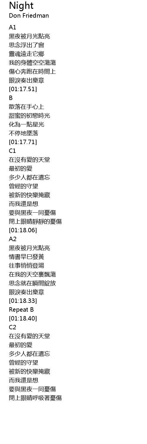 | [01:17.99] | 要與黑夜一同憂傷 |