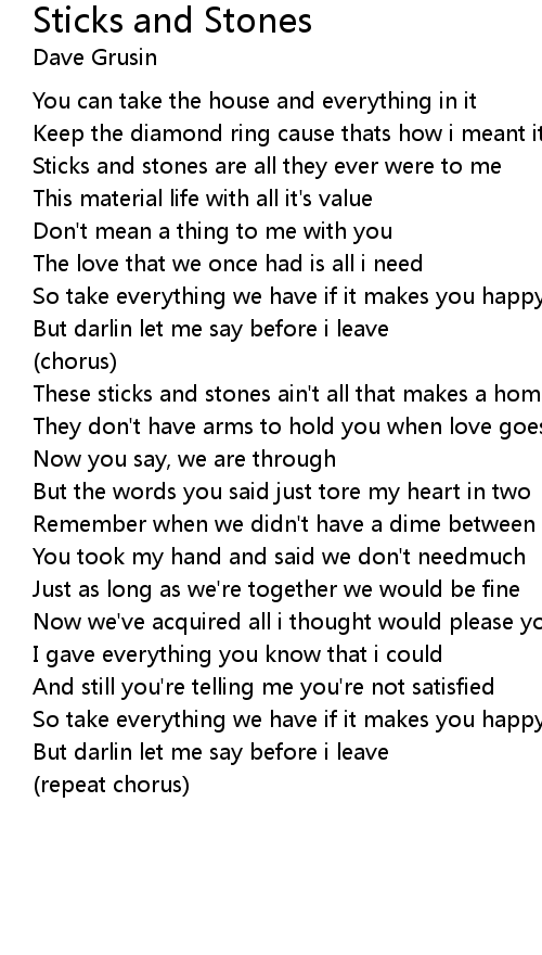 Sticks and stones are all they ever were to me |