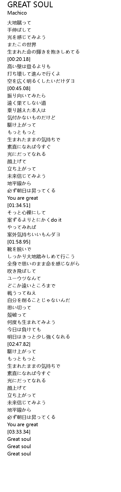 | [03:35.10] | Great soul |