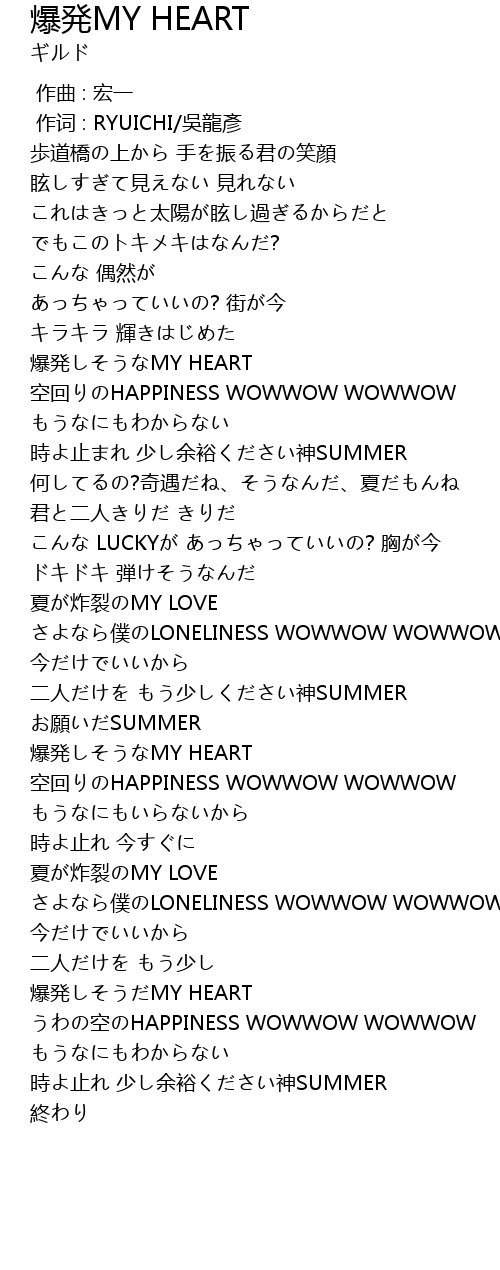 | [01:58.44] | 二人だけを もう少しください神SUMMER |