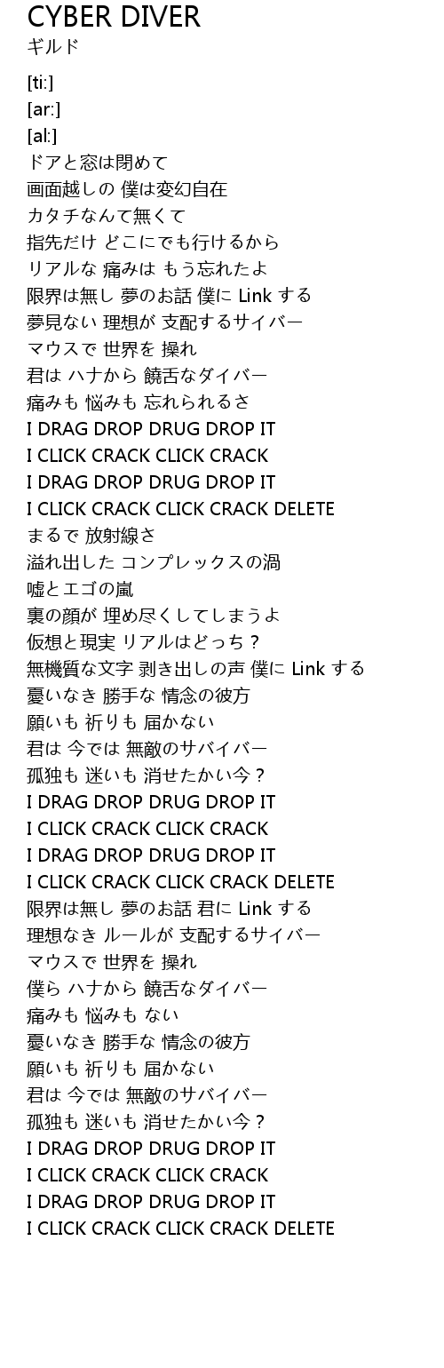 | [01:19.83] | I CLICK CRACK CLICK CRACK DELETE |
